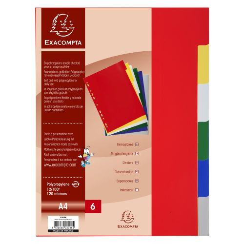 Plastic tabbladen – 6 posities – A4 – assorti kleuren